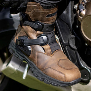 Designed for the relentless explorer, the Adventure Boots deliver the perfect blend of durability, weather resistance, and off-road performance. Crafted from tough buffalo leather and built for adventure, these boots offer waterproof reliability and superior grip whether you're riding through rain-soaked trails or rough terrain.