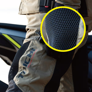 Stay cool and protected on every ride with the Taichi Air-Through Adventure Pants purpose-built for hot weather touring and ADV riding. Designed with strategically placed 3D mesh panels, these pants deliver exceptional airflow while ensuring CE Level 2 impact protection where it matters most. Ideal for summer expeditions, off-road trails, and tropical climates.