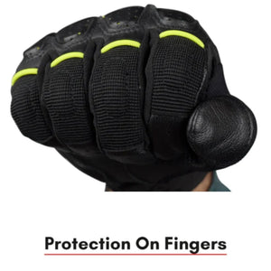 Rider Visibility: Hi-vis yellow piping on fingers improves visibility in low-light conditions.
