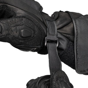 Extras: Helmet visor wiper (left glove), touchscreen-compatible index fingertips, stitched ring & pinky finger crash protection