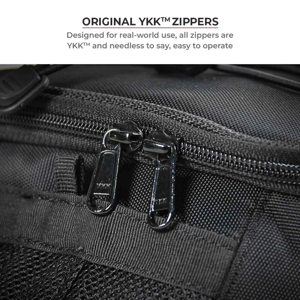 Heavy-duty YKK™ zippers & sliders for reliable, smooth operation.