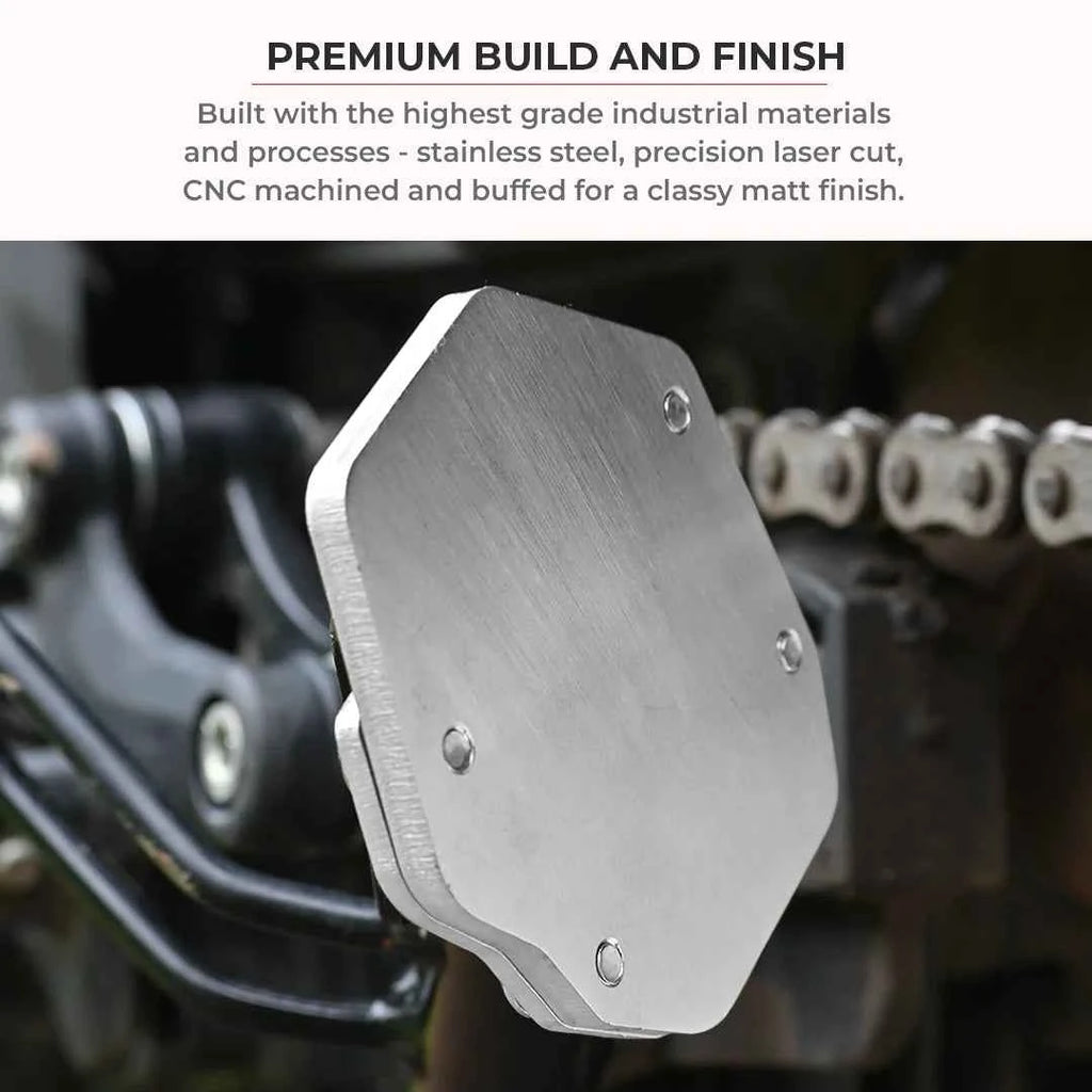 Larger Footprint: Provides a wider base for the sidestand, improving balance and preventing sinking on soft ground.